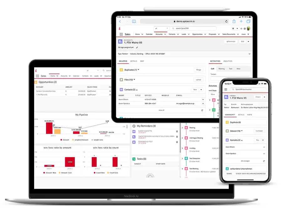 SpiceCRM levert een moderne, gebruiksvriendelijke UI die zich slim aanpast aan rol, context en apparaat, en zo een optimale en persoonlijke ervaring biedt voor elke gebruiker.