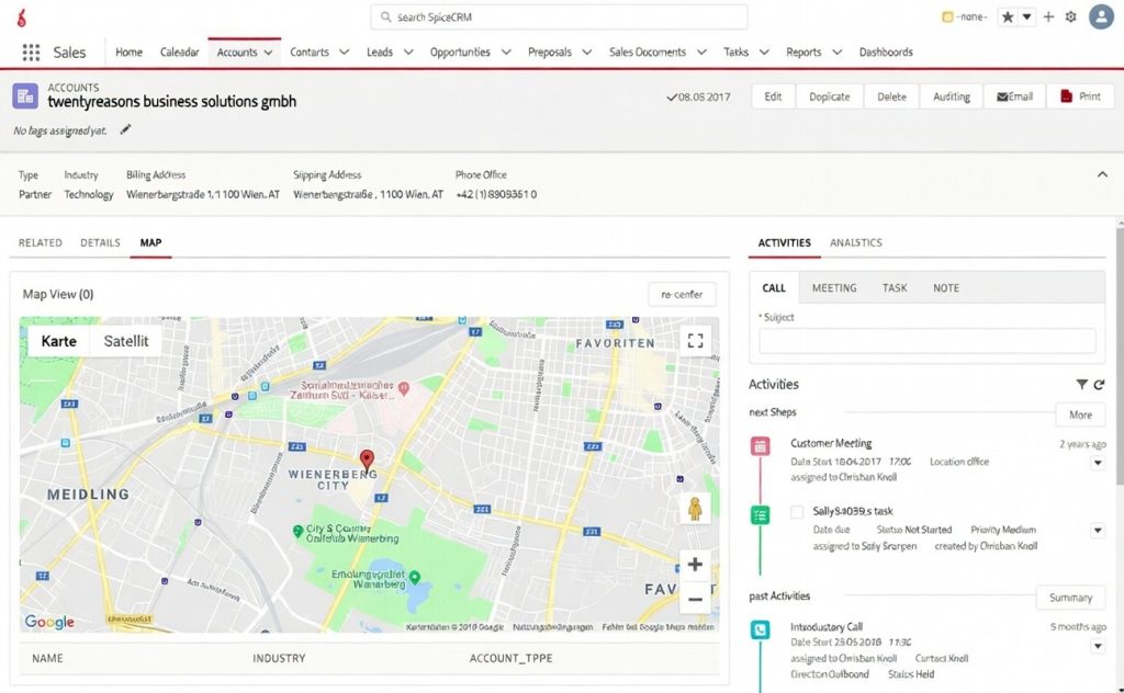 SpiceCRM biedt 360 graden accountmanagement: alle klantgegevens, interacties, activiteiten, documenten, notities en communicatiegeschiedenis op één centrale, altijd actuele plek voor een volledig en helder beeld van elke klantrelatie.
